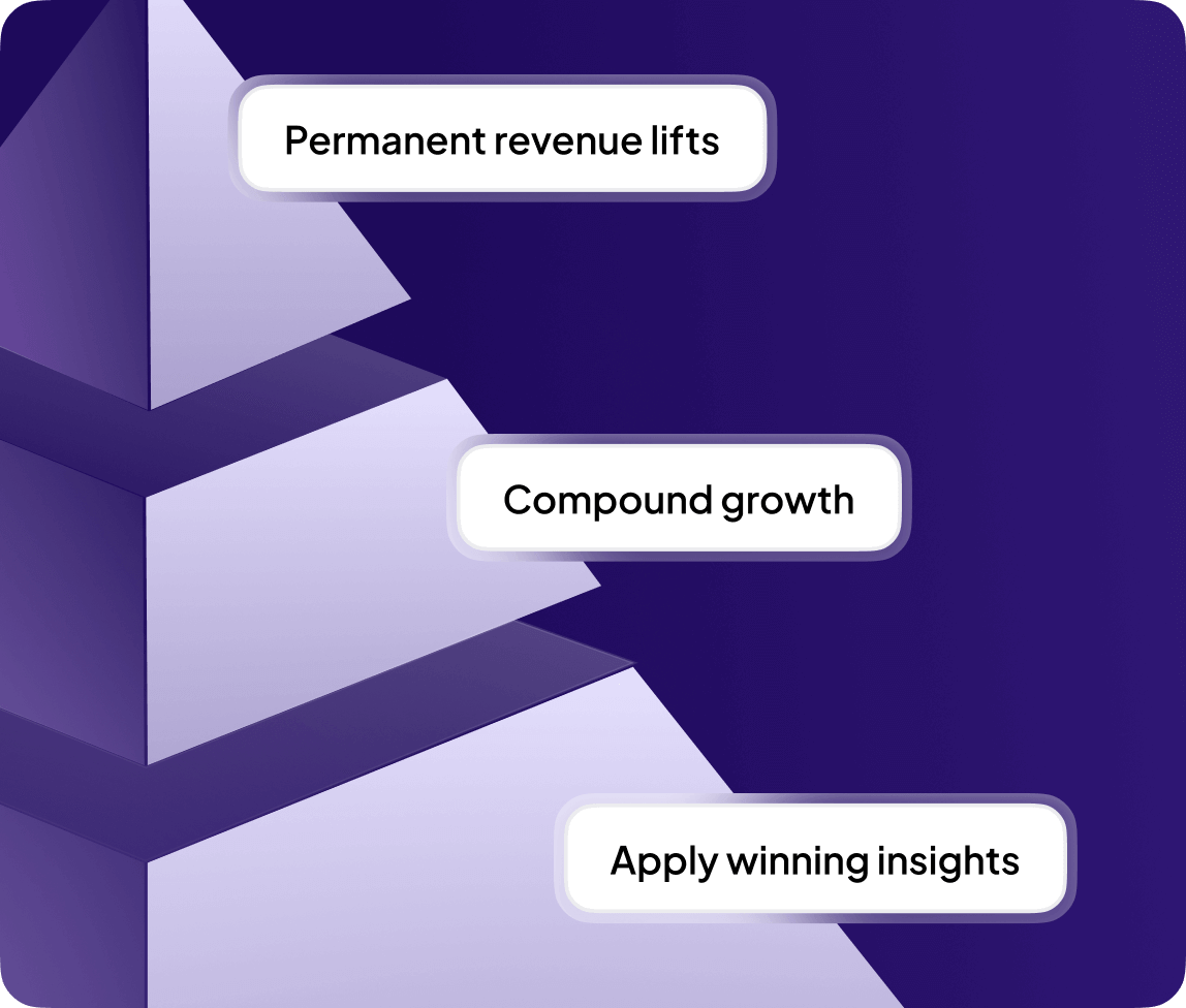 We stack up the small wins across your website, resulting in permanent and cumulative upticks of 100% + conversion rate improvements.